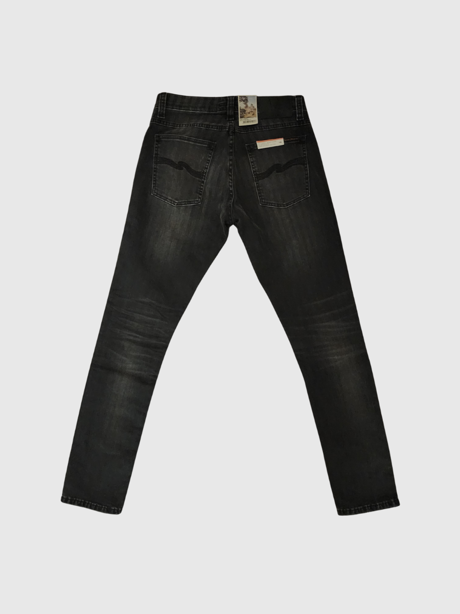The Tight Terry is Nudie’s popular slim-fit silhouette, offering a contemporary, comfortable fit that narrows from the hip down to a tight leg opening. This edition features a subtle, vertical pinstripe design woven into the dark, washed-out black denim. Made with 100% organic cotton, these jeans offer the quality and sustainability Nudie is known for, giving you a sharp look with a soft feel.