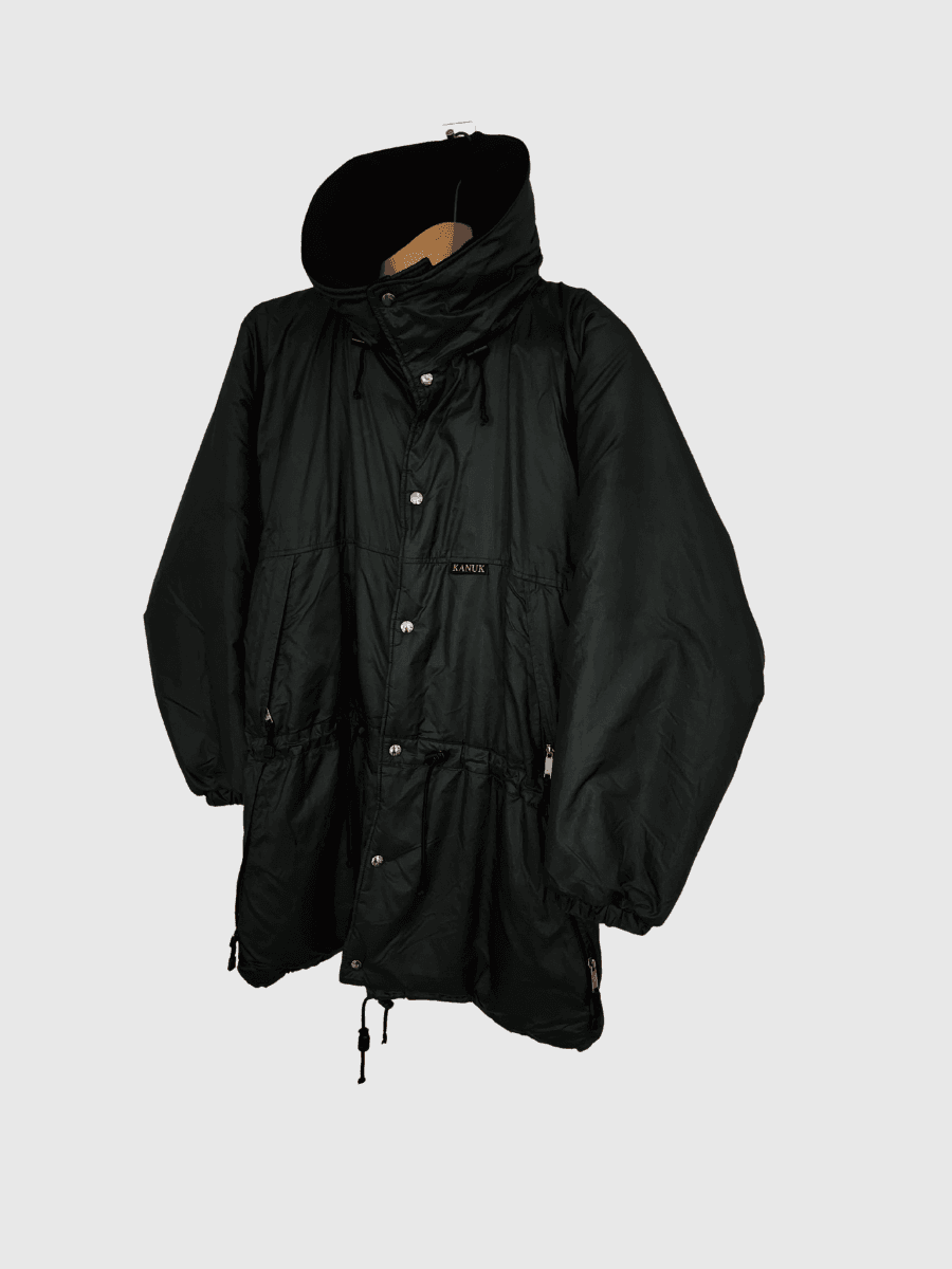 Experience the renowned quality of Canadian-made winter wear with this authentic vintage 90s Kanuk Heritage Otarie coat. Kanuk, a legendary brand based in Montreal, is celebrated for crafting some of the world’s warmest parkas, and this piece is a perfect example of their heritage.